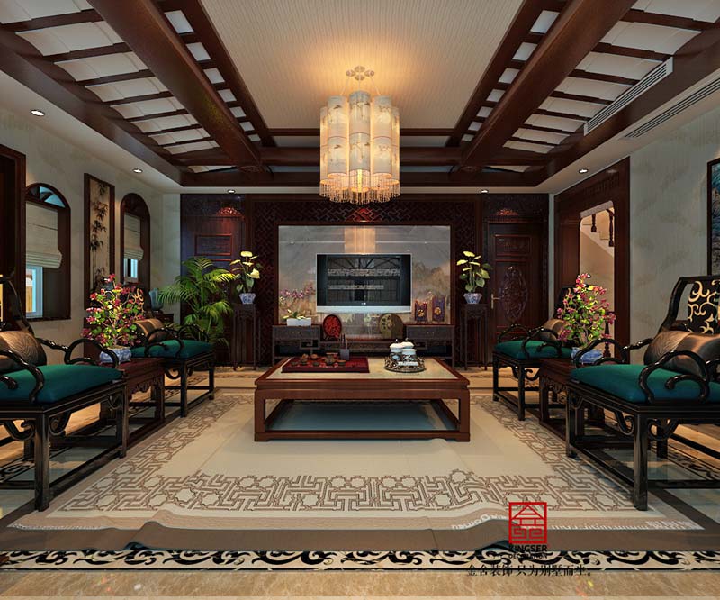 大者別墅300平米新中式風格裝修實景案例