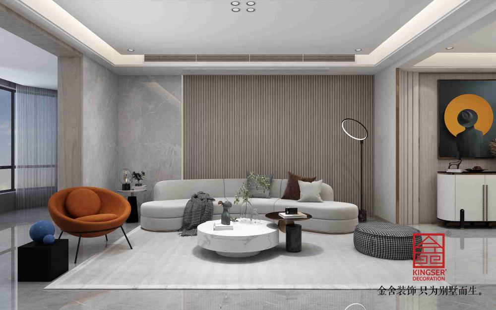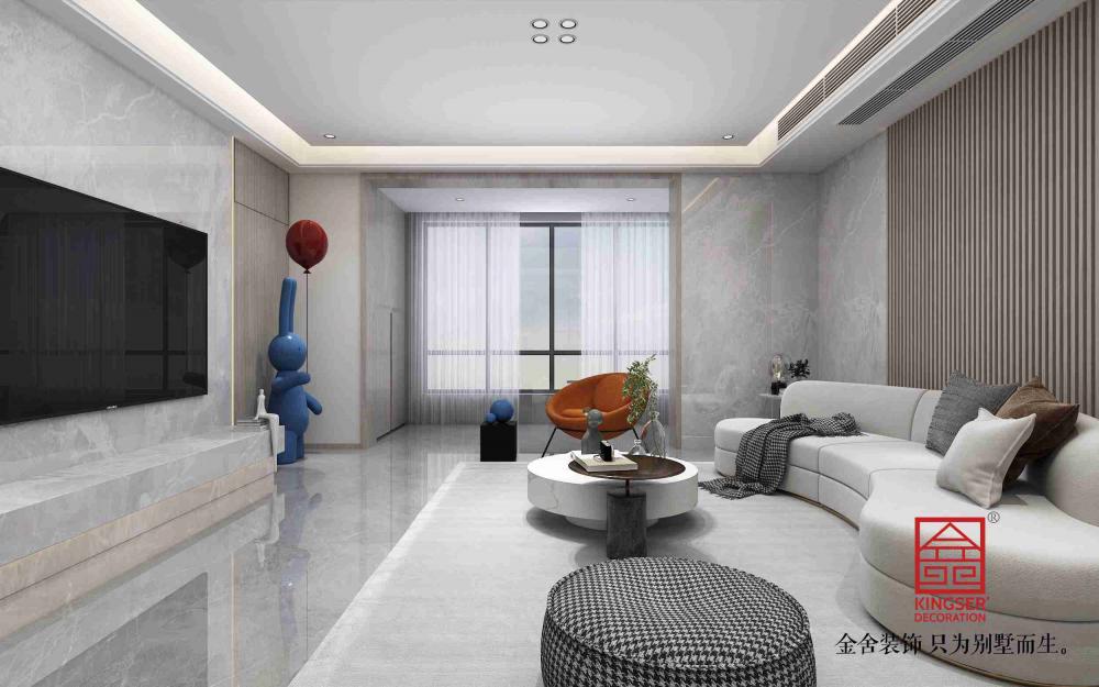 榮盛華府190平米現(xiàn)代極簡(jiǎn)風(fēng)格裝修-客廳
