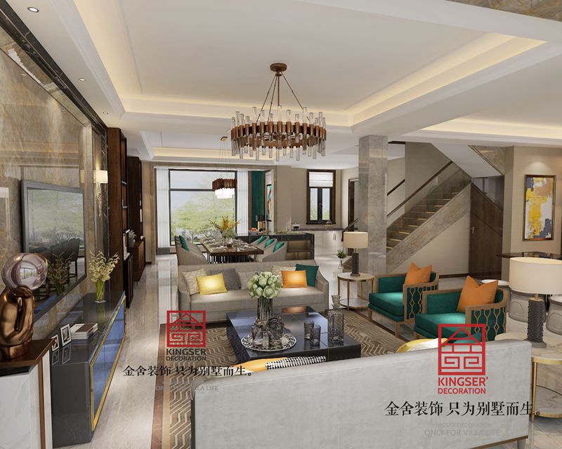 碧桂園267㎡港式輕奢風格客廳裝修設計