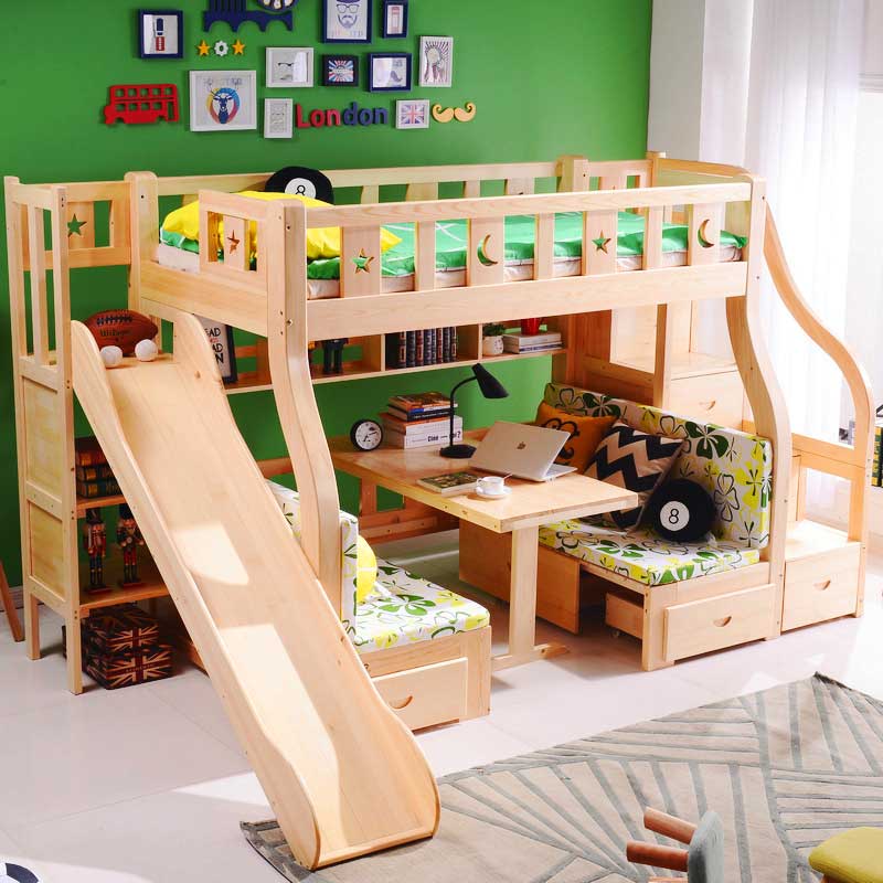 如果孩子年齡比較小,可能睡覺會不安穩(wěn),那么孩子的床鋪最好安置在下鋪,如果要安置在上鋪的話,必須要做好防護(hù),以免發(fā)生意外。此外高低床的樣式比較多樣,對于低齡的孩子可以多從安全娛樂方面考慮,帶滑梯的高低床是一個不錯的選擇。