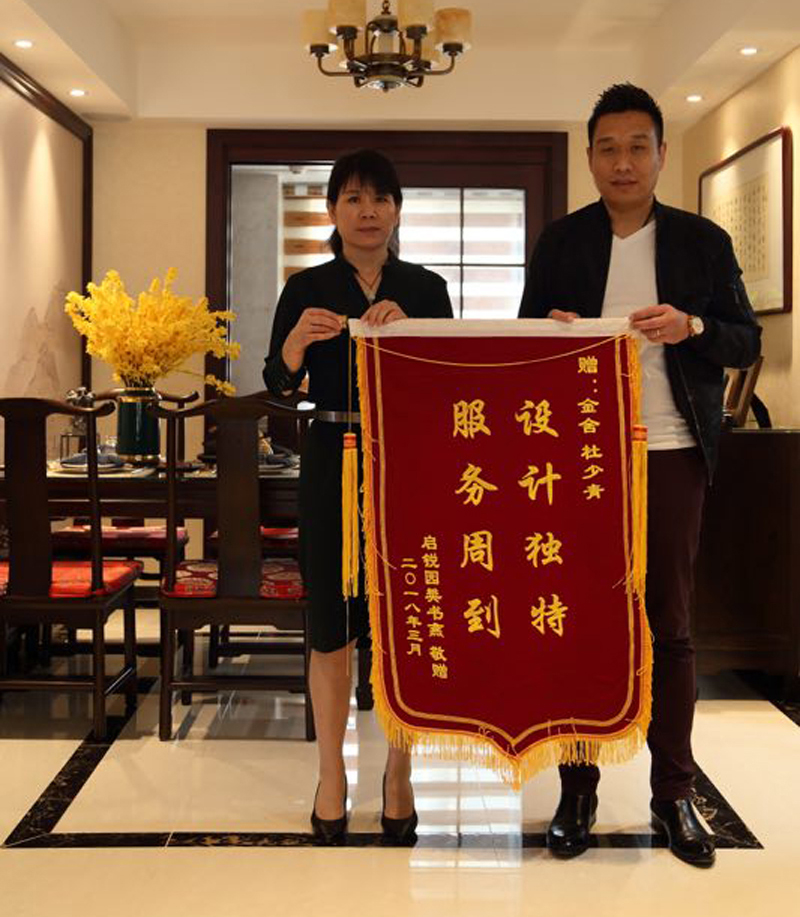 > 啟銳園番女士致石家莊金舍設計師錦旗