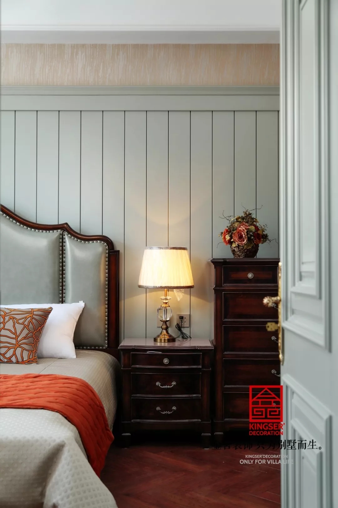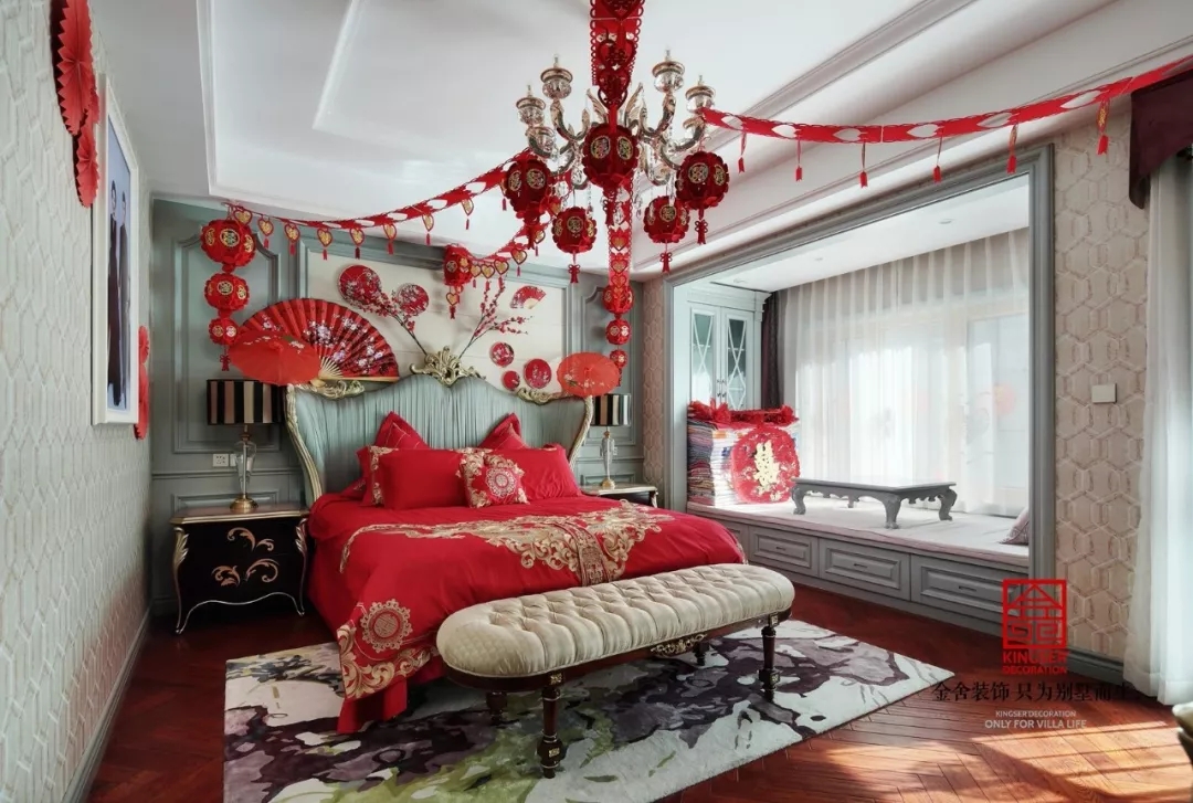 臥室“靜”與“凈”都藏在每一個元素里。內蘊悠遠,優雅從容,相伴入眠,讓夢境都變得詩意起來。臥室在配色上沒有考慮中式的傳統配色,而是用的紅色與藍色的配合,讓對比色擺脫傳統的中式氛圍,讓中式的感覺發生一個質的飛躍,讓時尚感充滿整個空間。