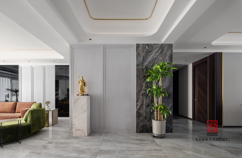以現(xiàn)代材料營造理性的生活舞臺,用線條拓展出空間的層次感,設計回歸生活,演繹理想化的家居夢。