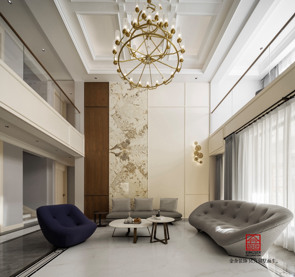 別墅的客廳,無(wú)疑是整棟建筑中的璀璨明珠。在挑高六米的宏偉空間中,我們巧妙地布置了一個(gè)簡(jiǎn)約風(fēng)格的轉(zhuǎn)角壁爐區(qū),與素色沙發(fā)相映成趣,營(yíng)造出一種既現(xiàn)代又舒適的氛圍。