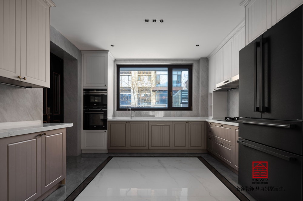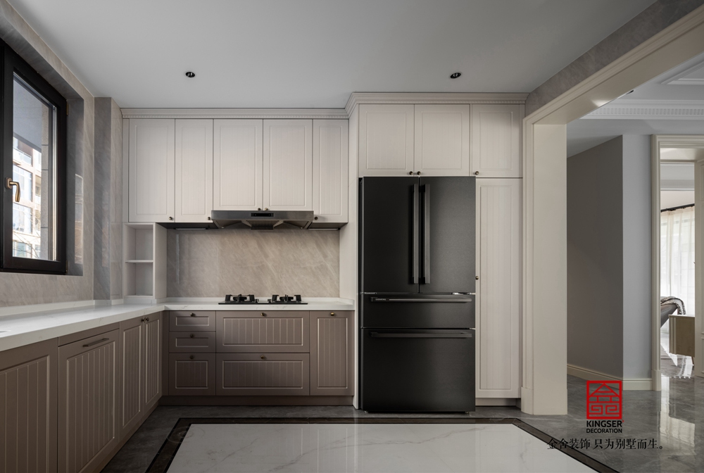 巧妙地融合了餐廳與廚房的空間,創(chuàng)造了一個(gè)開(kāi)放而又不失獨(dú)立性的餐廚一體化區(qū)域。這一設(shè)計(jì)理念旨在讓烹飪與用餐的體驗(yàn)更加流暢,同時(shí)也增強(qiáng)了家人與朋友之間的互動(dòng)。餐廚空間的中心位置,我們精心打造了一個(gè)巖板中島臺(tái)。中島臺(tái)不僅作為廚房的操作臺(tái),還充當(dāng)了餐廳與廚房之間的自然分隔,既保證了兩個(gè)空間的獨(dú)立性,又確保了視線的通透與流動(dòng)。