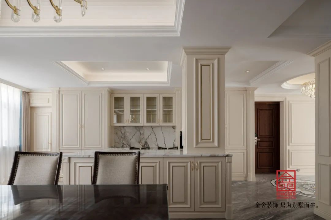 玫瑰灣這套實(shí)景以復(fù)古和奢華著稱,每一個(gè)細(xì)節(jié)都充滿了設(shè)計(jì)感。金色線條與純潔的素色完美結(jié)合,展現(xiàn)出一種對(duì)時(shí)尚意味的考究與追求,仿佛每一處都在訴說著不凡與優(yōu)雅。