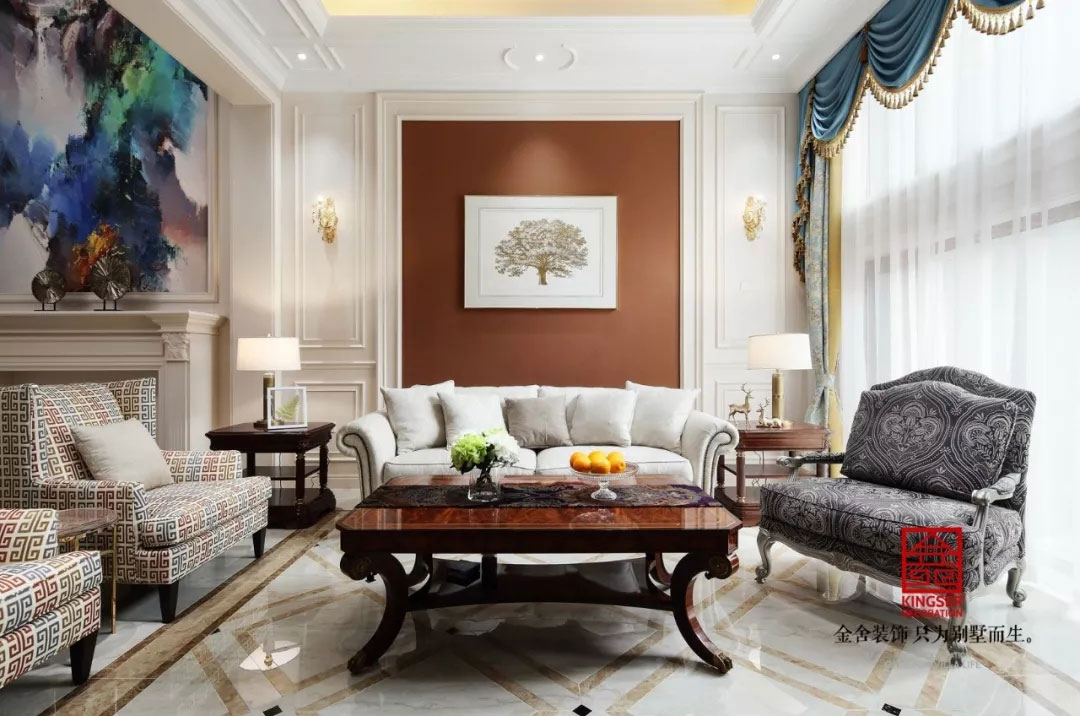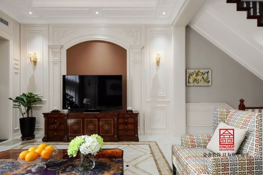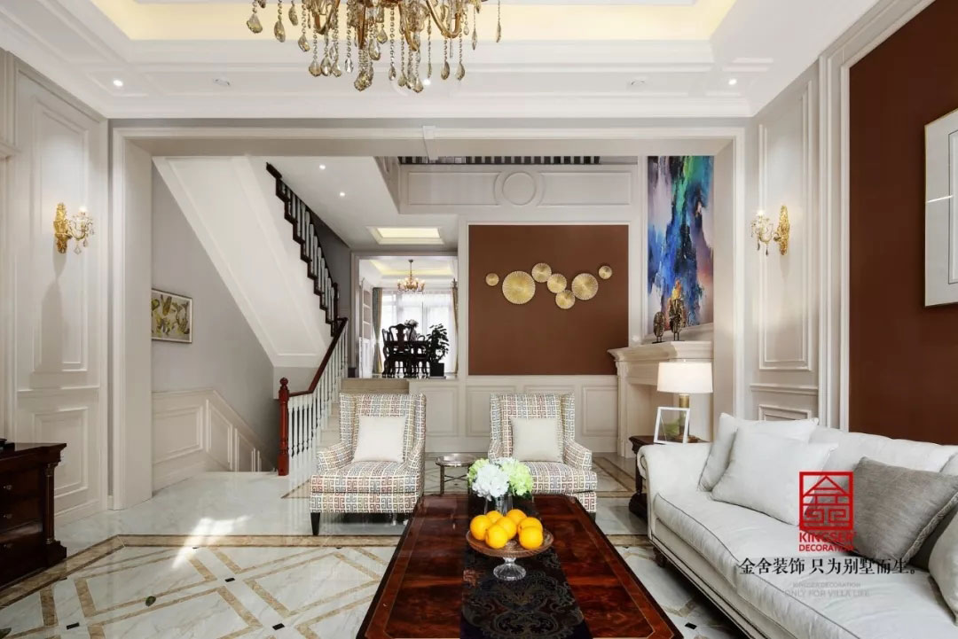 此案例為石家莊別墅裝修-藍(lán)郡別墅600平米美式風(fēng)格裝修實(shí)景。色彩斑斕的配色帶著現(xiàn)代生活憧憬的意味融化在現(xiàn)代家居之中,暢想的時尚感縈繞在不斷變化的設(shè)計(jì)之中,有嘗試,有徜徉;有幻夢,有臆想,每一個對于生活的暢想都將人們帶到另一種生活之中,通透的色彩象征著一種生活態(tài)度,生活的真諦不在于奢華的享受,在于生活的舒心和內(nèi)心的平靜!