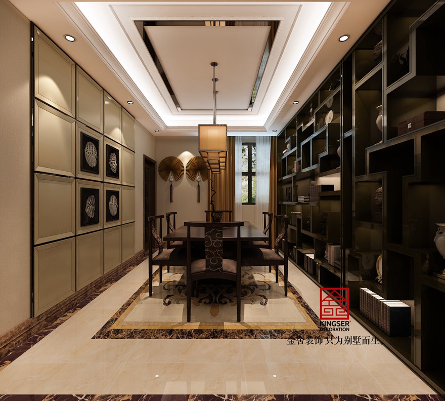 設計說明:此案例為石家莊金舍裝飾-新源燕府186平米新中式風格裝修案例。新中式風格誕生于中國傳統文化復興的新時期,是富有東方特色的新的風格。是現代人將現在流行元素與傳統文化的結合,它們的完美融合是現在美學上的一個新的亮點。整個空間中,中式古韻與現代時尚相搭配,使人不覺運用現代思維來細細玩味那番閑情逸致來。