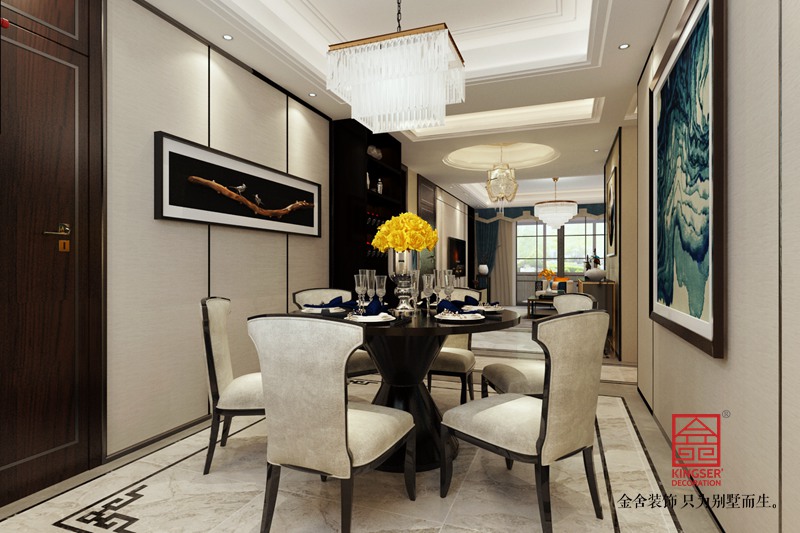 設(shè)計說明:此案例為石家莊金舍裝飾-保利拉菲公館172平米新中式風格裝修效果圖。業(yè)主是一個溫文爾雅的女士,講究假的溫暖,孩子的教育,燈光的功能性,在初步洽談的過程中,我與業(yè)主脾氣相投,專業(yè)性與責任感是不可少的,所以很快得到了業(yè)主的認可,在眾多的對比中達成共識。