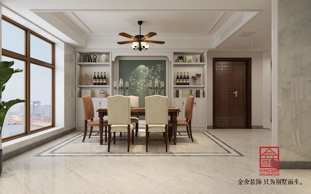 設(shè)計(jì)說(shuō)明:此案例為石家莊金舍裝飾-融創(chuàng)中心217平米簡(jiǎn)美風(fēng)格裝修效果圖。簡(jiǎn)美風(fēng)格即是簡(jiǎn)約美式風(fēng)格,客廳裝飾韻味既含有古典美式的華貴又有現(xiàn)代風(fēng)格的簡(jiǎn)約,運(yùn)用清亮的色彩,從硬裝到軟裝追求空間的干凈與利落,不做復(fù)雜的空間布局,讓室內(nèi)充滿溫馨和舒適的感覺(jué),帶給人休閑式的浪漫生活,餐廳基本上都與廚房相連,廚房的面積較大,操作方便、功能強(qiáng)大,廚房的多功能還體現(xiàn)在家庭內(nèi)部的人際交流多在這里進(jìn)行,這兩個(gè)區(qū)域會(huì)同起居室連成一個(gè)大區(qū)域,成為家庭生活的重心。