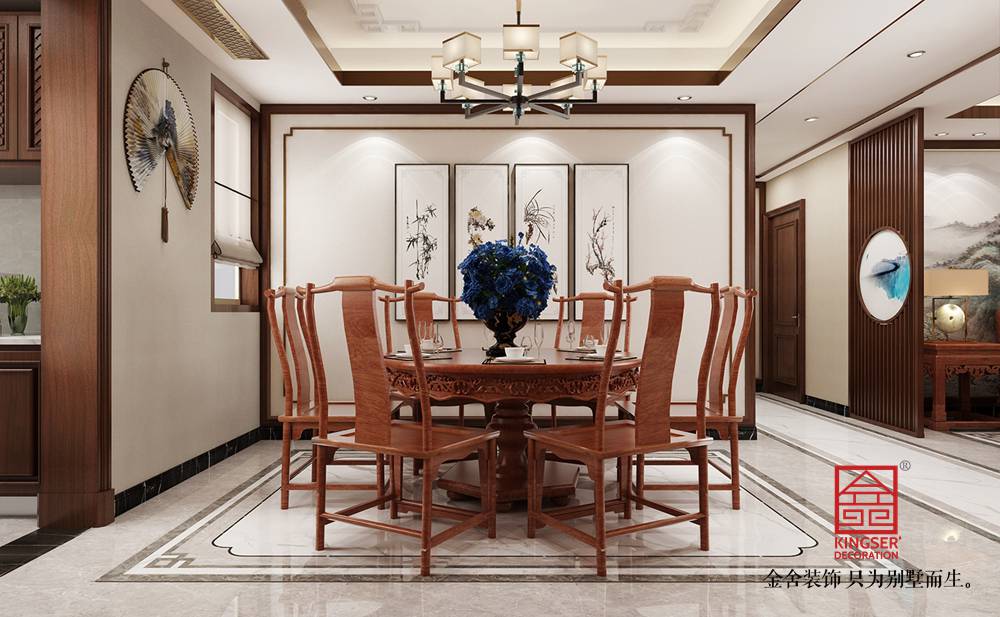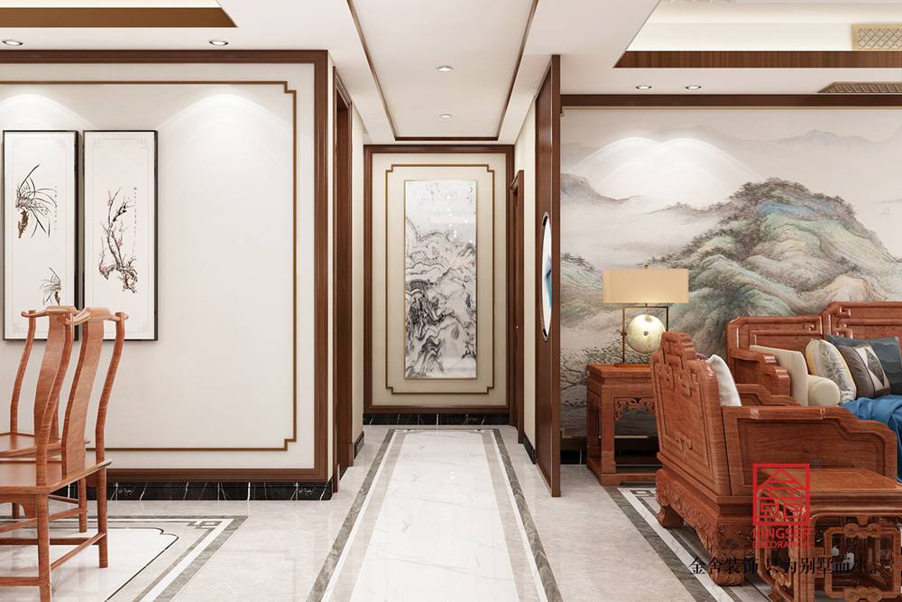 設(shè)計(jì)說明:本案為石家莊金舍裝飾-維多利亞三期166平米中式風(fēng)格裝修效果圖。風(fēng)格定義為中式風(fēng)格,中式風(fēng)格非常講究空間的層次感,在需要隔絕視線的地方,則使用中式的屏風(fēng)、中式木門、工藝隔斷、簡約化的中式“博古架”,通過這種新的分隔方式,展現(xiàn)出中式家居的層次之美,客餐廳空間添加了中式山水畫祥云圖案元素,使整體空間感覺更加豐富,大而不空、厚而不重,有格調(diào)又不顯壓抑。