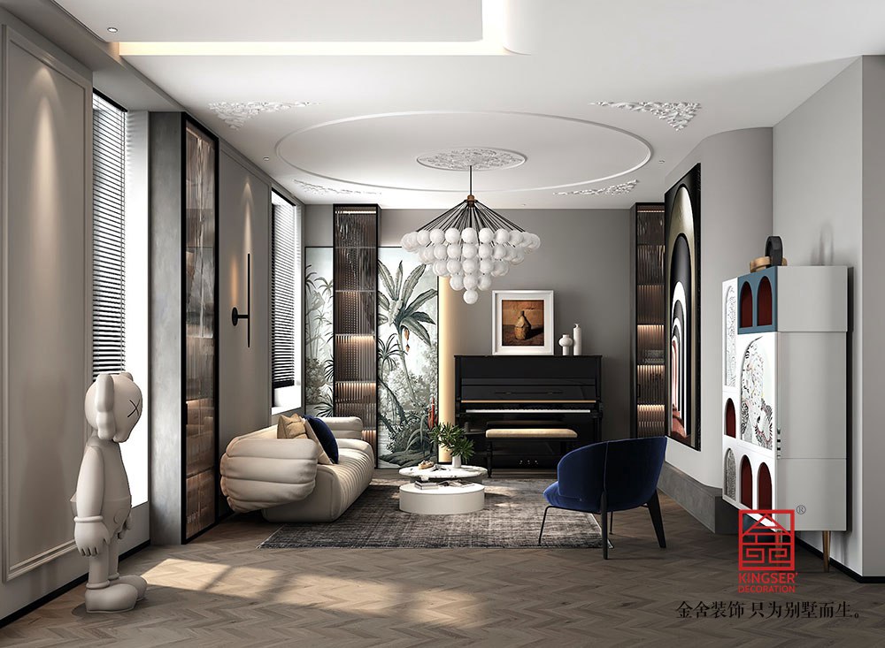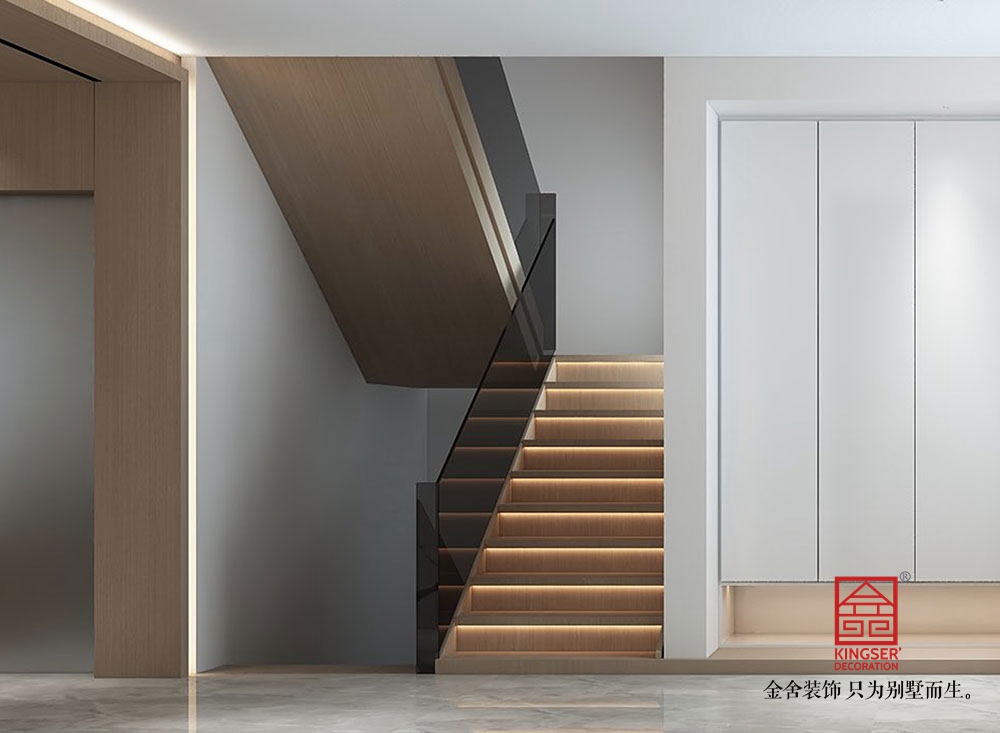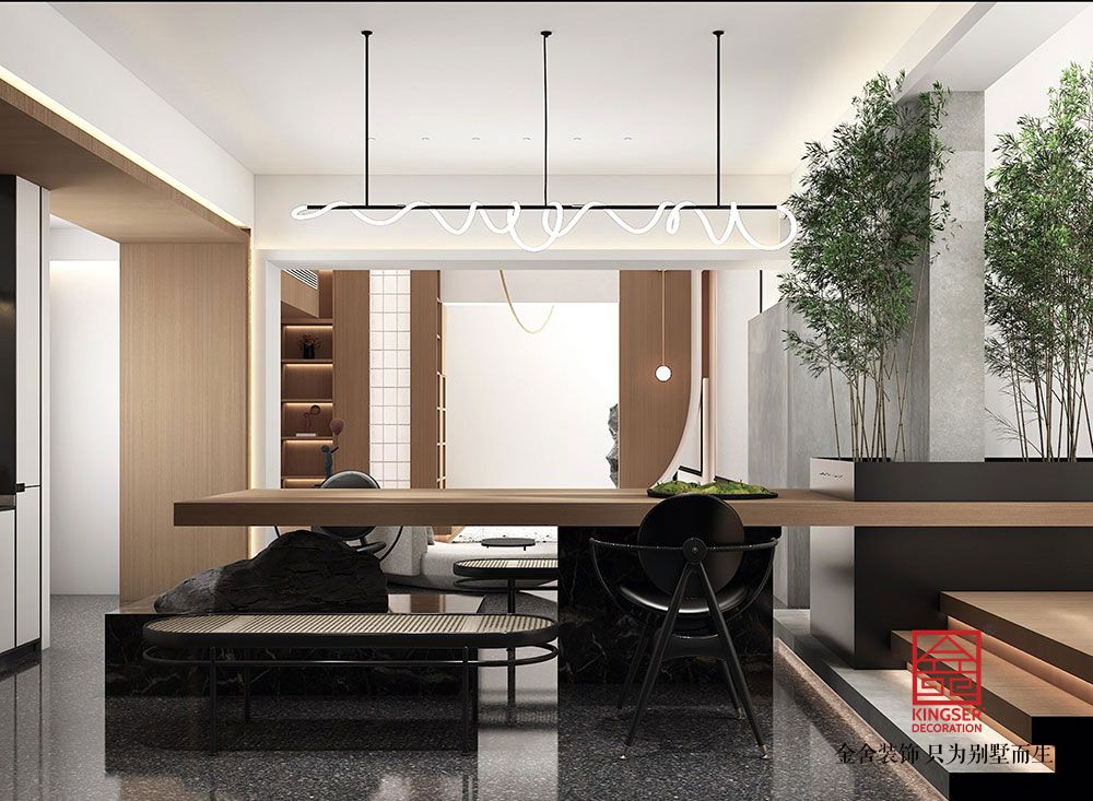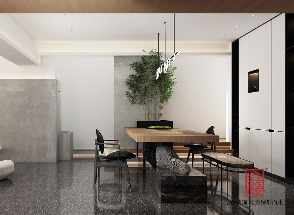 此案例為是石家莊金舍裝飾-東南智匯城別墅500平米現代風格裝修效果圖。在這個空間中,色彩和材質的運用秉承日本傳統美學中對自然形態的推崇,營造澄凈如洗的肅凈感。
