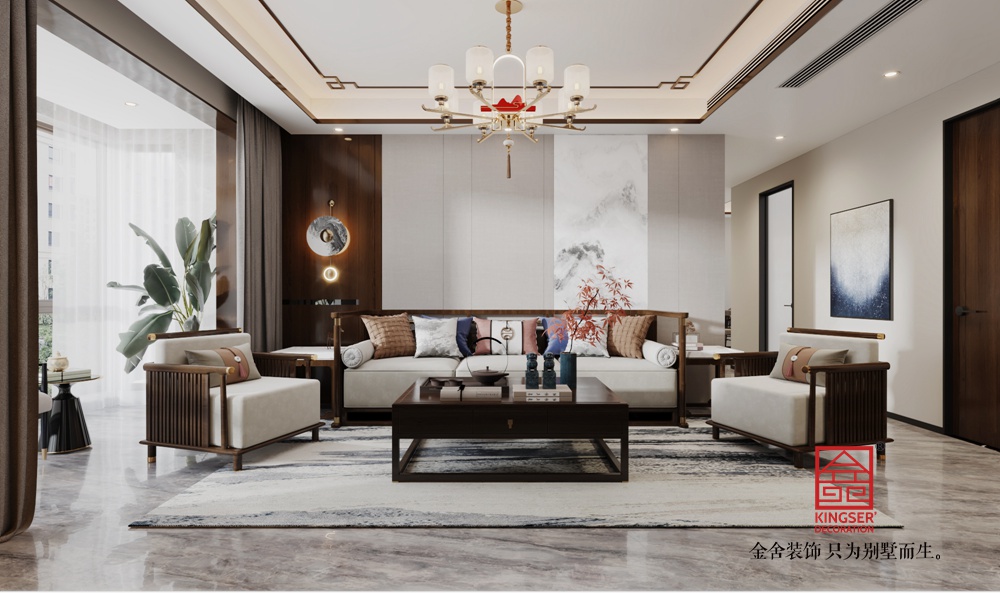 大面采光結(jié)合輕紗窗簾,讓自然光輕柔灑落,與室內(nèi)的綠植、掛畫等相互映襯,營造出 “天人合一” 的意境,打造出一個既有傳統(tǒng)文化底蘊,又符合現(xiàn)代生活需求的舒適居所。